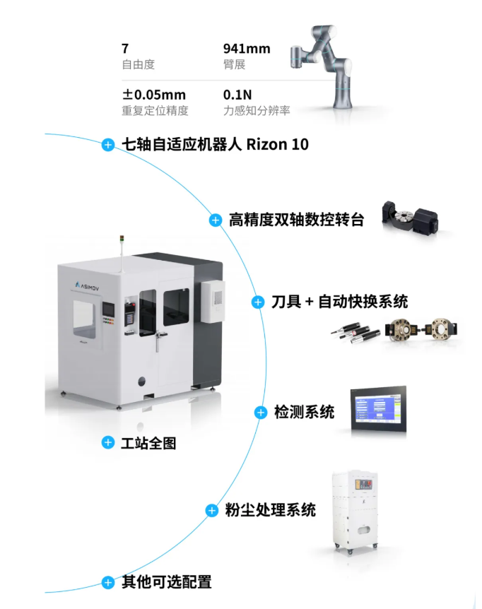 多軸自適應打磨拋光工作站可實現(xiàn)磨拋工序全流程100%自動化,解決了過往人工磨拋時間過長的問題,使打磨效率大幅提升。